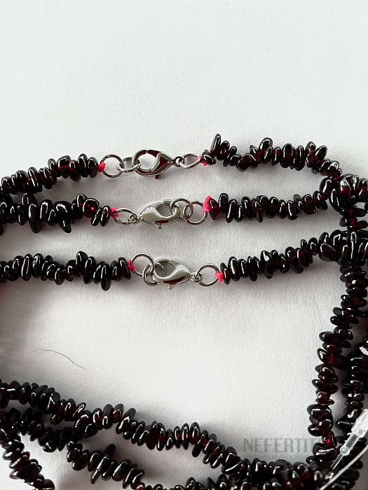 A necklace of chopped tumbled garnet pieces. The length of 45 cm has an unfastened jewelry handle, the length of 80 cm is without unfastening. Please note: for a 45 cm necklace, the sleeve material may be pink, see… more »