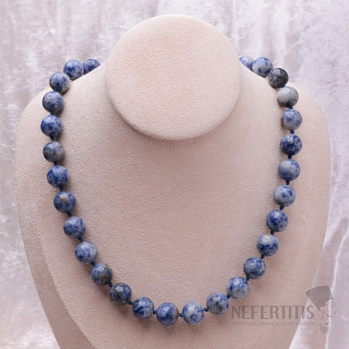 Attractive necklace made of large quartz beads with sodalite. Necklace length approx. 46 cm, jewelry clasp, bead size approx. 12 mm, each bead is secured with a knot. Illustrative image, you are buying a natural product, therefore individual necklaces may differ from it mainly in the color shade and pattern of the stone. However, you will always receive a necklace of comparable quality.