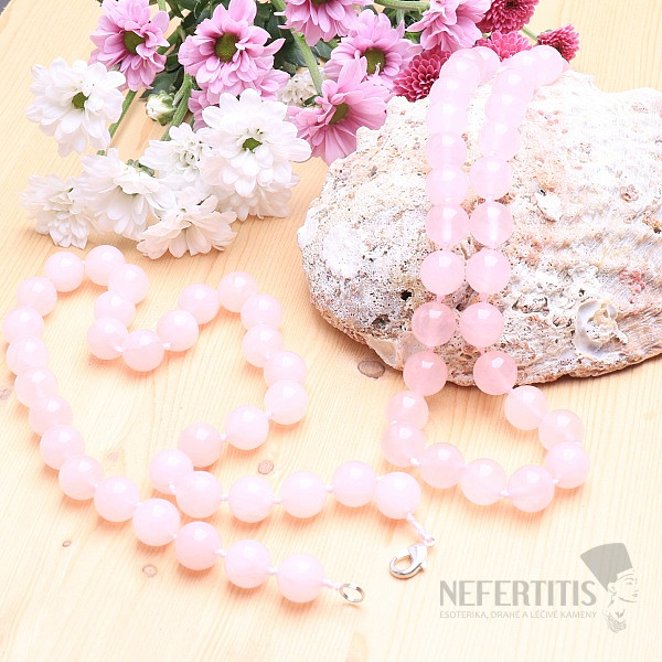 Exclusive, delicate necklace made of large beads of rose quartz. Rose quartz is a symbol of love and beauty. Necklace length approx. 47 cm, size of rose gold beads approx. 12 - 12.5 mm, jewelry clasp. Illustrative image, you are buying a natural product, therefore individual necklaces may differ from it mainly in color shade, luster and stone pattern. However, you will always receive a necklace of comparable quality.