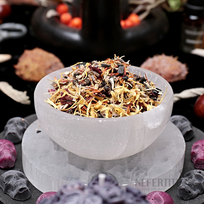 Samhain smoking blend - the border between worlds and the celebration of ancestors, which we have invented and mixed for you in our magical workshop in Nefertitis, in a way that respects the traditional herbs used during this magical holiday. Celebrate the 7th holiday of the Wheel of the Year, which falls on the night of October 31 to November 1. The blend contains resin, holy wood, lavender, rosemary and other ingredients. Weight 20 g.