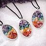 Orgonite charming chakra pendant in the shape of an oval made of pieces of colored semi-precious stones in the colors of the chakras according to the Indian tradition harmonizes and recharges the energy of the chakras, body and mind. Semi-precious stones in the colors of the chakras are embedded in the orgonite.