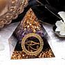 Orgonite pyramid Eye of Horus with amethyst and obsidian