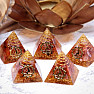 A charming orgonite pyramid with carnelian and spiral, traditionally used to increase positive energy in the space where this orgonite pyramid is placed. Dimensions: approx. 3 x 3 x 3.2 cm (base, height). Illustrative image.