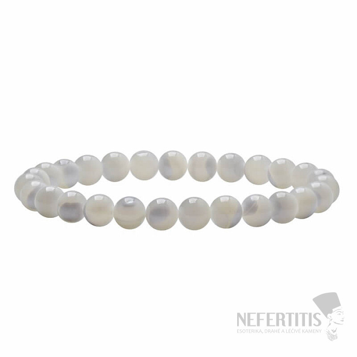 A beautiful, white to glittering opalescent bracelet made of natural mother-of-pearl beads is a bearer of new life, fertility, new beginnings and endless filled love for its owner. A delicate yet distinctive and unmissable bracelet that will be a very decorative and elegant piece of jewelry in all moments of your life, whether during daily wear or at a wedding. The beads with a diameter of approx. 7 mm are strung on a high-quality white nylon rubber band.