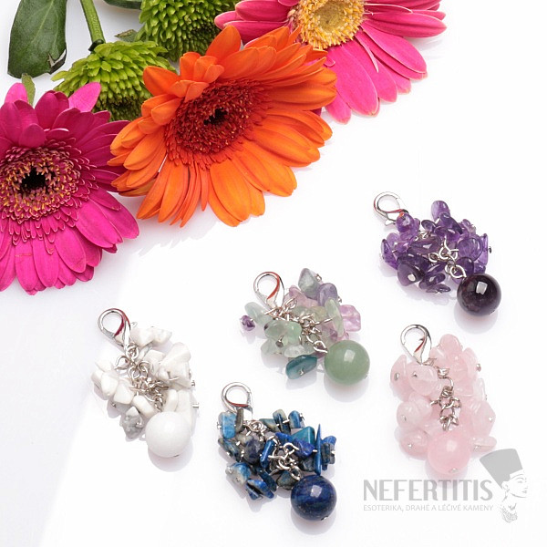 Pendant made of tumbled pieces of natural lapis lazuli in the shape of a grape with a large bead. The length of the pendant is approx. 5 cm, the metal components and the jewelry clasp are made of base metal. In addition to neck decoration, this pendant is also suitable as a key decoration, which is an ideal opportunity to keep your favorite stone with you at all times.