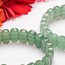 A distinctive, beautiful bracelet made of oval-shaped plates of cut green aventurine. The faceted cut edges on these stones give the bracelet a sparkling, exclusive look. The width of the bracelet is approx. 14 mm, the aventurine ovals are strung on two green nylon rubber bands. Illustrative image, you are buying a natural material, therefore individual bracelets may differ from the accompanying photos in terms of size, shape, color, structure and pattern of stones.