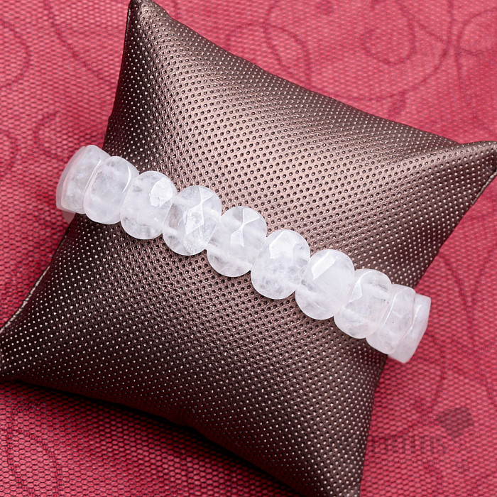 Luxury bracelet made of oval-shaped plates of cut crystal. The faceted cut edges on these stones give the bracelet a sparkling, exclusive look. The width of the bracelet is approx. 14 mm, the crystal ovals are strung on two white nylon rubber bands. Illustrative image, you are buying a natural material, therefore individual bracelets may differ from the accompanying photos in terms of size, shape, color, structure and pattern of stones.
