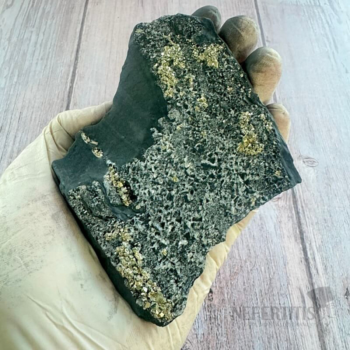 Raw shungite with pyrite 32