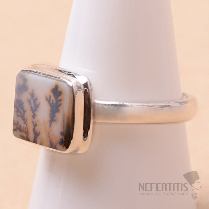 Exceptional and beautifully "rendered" ring made of rare dendritic scenic agate in silver. Ag 925. Stone size approx. 1.1x1.3 cm. You are purchasing the jewelry pictured directly.