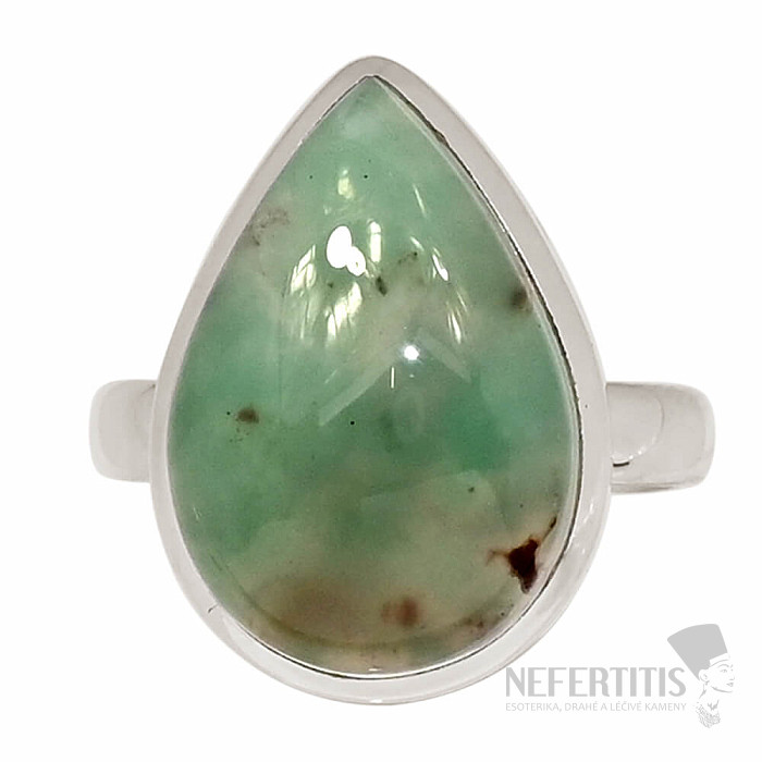 Beautiful silver ring made of rare aquaprase. Ag 925. Aquaprase is a beautiful variety of chalcedony, originating from Africa, combining blue-green and brown. Thanks to the unusual combination of colors, sky blue combined with green and brown, each piece is unique, some may contain milky white inclusions resembling sea waves, or islands floating in the sea, or clouds in the sky. Thanks to its appearance, the stone is unusually beautiful and unmistakable. The size of the stone is approximately 1.9 cm . You are buying the jewelry pictured.