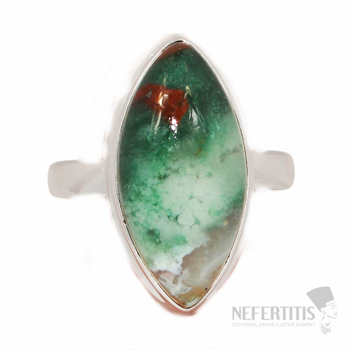 Beautiful silver ring made of rare aquaprase. Ag 925. Aquaprase is a beautiful variety of chalcedony, originating from Africa, combining blue-green and brown. Thanks to the unusual combination of colors, sky blue combined with green and brown, each piece is unique, some may contain milky white inclusions resembling sea waves, or islands floating in the sea, or clouds in the sky. Thanks to its appearance, the stone is unusually beautiful and unmistakable. The size of the stone is approximately 2.3 cm . You are buying the jewelry pictured.