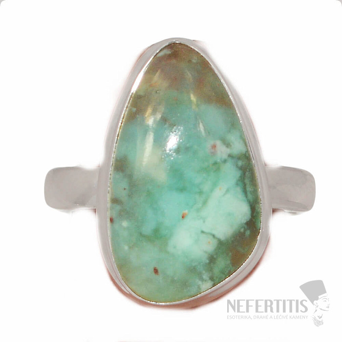 Beautiful silver ring made of rare aquaprase. Ag 925. Aquaprase is a beautiful variety of chalcedony, originating from Africa, combining blue-green and brown. Thanks to the unusual combination of colors, sky blue combined with green and brown, each piece is unique, some may contain milky white inclusions resembling sea waves, or islands floating in the sea, or clouds in the sky. Thanks to its appearance, the stone is unusually beautiful and unmistakable. The size of the stone is approximately 2 cm . You are buying the jewelry pictured.