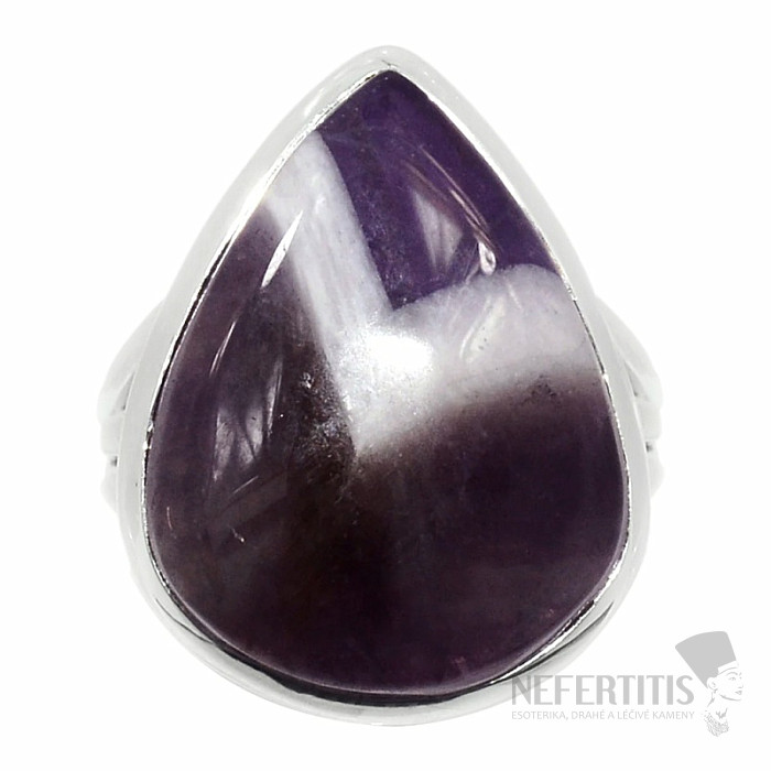 Beautiful silver ring with a chevron amethyst cabochon . Ag 925. An extremely elegant piece of jewelry that will charm everyone and no one will miss it on your hand. Chevron is a variety of amethyst with a distinctive white pattern in a dark purple stone, which makes this type of amethyst so attractive. You are purchasing the jewelry shown. Stone size approx. 2.2 cm.