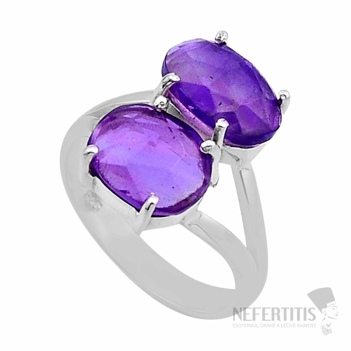 Beautiful silver ring with cut amethysts . Ag 925. Extremely elegant jewelry that will charm everyone and no one will miss it on your hand. The size of the stone is approximately 1.5 cm. You are buying the jewelry shown.