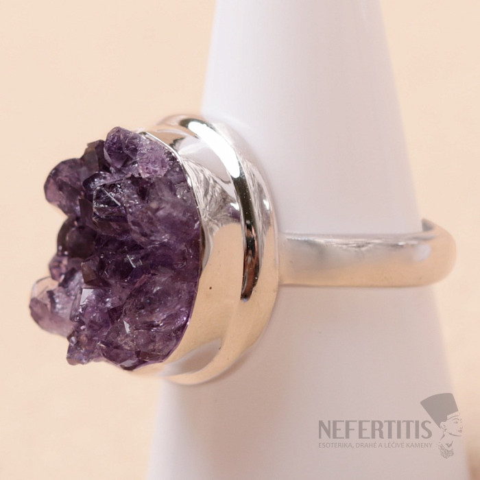 Charming silver ring with a druzy of deep purple natural amethyst . Silver jewelry with a druzy of amethyst is quite rare on the market, we highly recommend this ring to all amethyst lovers. The druzy has a beautiful shape and perfectly shaped crystals with an almost uniform purple color. Ag 925. You are purchasing the piece shown directly. The druzy size is approximately 1.8 cm .