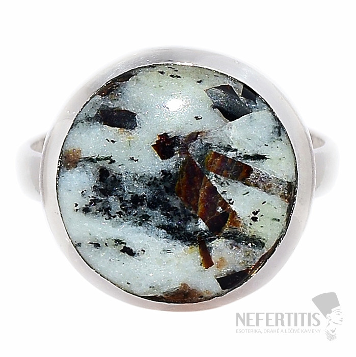 Beautiful ring made of rare astrophyllite. Ag 925. You are purchasing the exact piece of jewelry shown. Stone size approx. 1.6 cm.