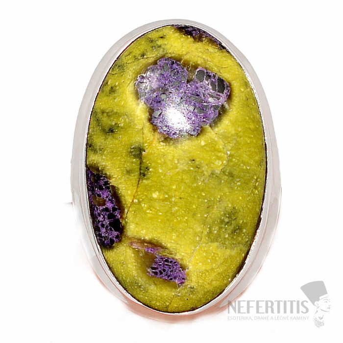 Silver ring with rare Atlantisite. Atlantisite, also called stichtite, is a rare stone that is mined in only one mine in the world. The supply of this stone on the market is very limited. The charm and beauty of its deep purple color in a green stone will enchant you at first sight. Ag 925. The size of the stone is approximately 2.1 cm , together with the unusual and distinctive color combination, makes the jewelry exceptional and unforgettable. You are purchasing the jewelry shown directly.