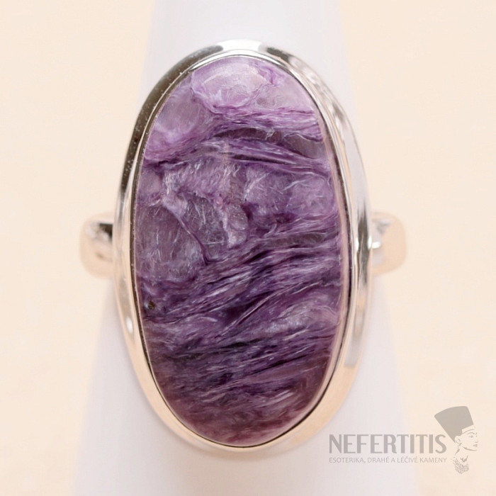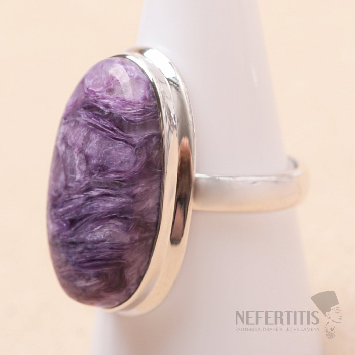 Silver ring with charoite. Beautifully purple-colored charoite will enchant you not only with its silky shine, but also with the transformation of the drawing in the changing light. Ag 925. Stone size approx. 2.6 cm. You are purchasing the jewelry pictured.