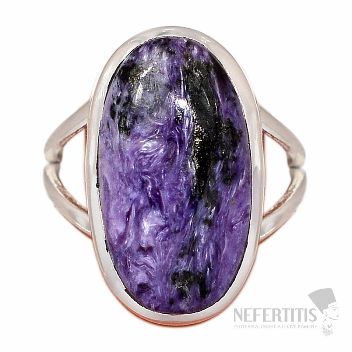 Silver ring with charoite. Beautifully purple-colored charoite will enchant you not only with its silky shine, but also with the transformation of the drawing in the changing light. Ag 925. Stone size approx. 1.9 cm. You are purchasing the jewelry pictured.