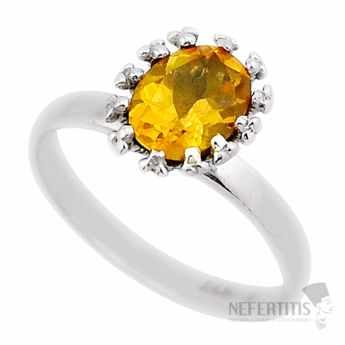 Modern and elegantly designed, yet unmissable, silver ring with cut citrine. The ring is set with cut citrine, which gives it a diamond-like sparkling appearance. Ag 925. Stone size approx. 0.7 cm. You are purchasing the jewelry pictured.
