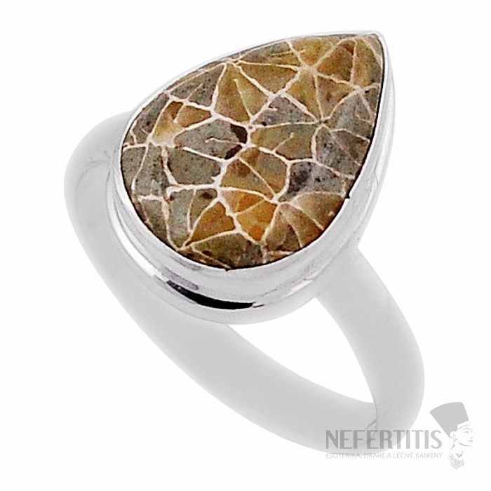 Silver ring with beautiful petoskey stone coral. Stone size approx. 1.4 cm. Ag 925. You are purchasing the jewelry pictured.