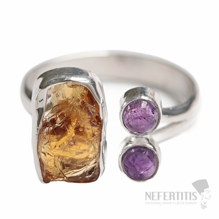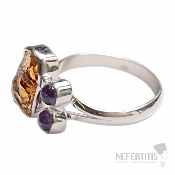 Silver designer ring with raw citrine and amethyst . Ag 925. This ring is particularly beautiful not only in its shape, but above all in its workmanship. Citrine size approx. 1.3 cm . You are buying the jewelry shown directly.