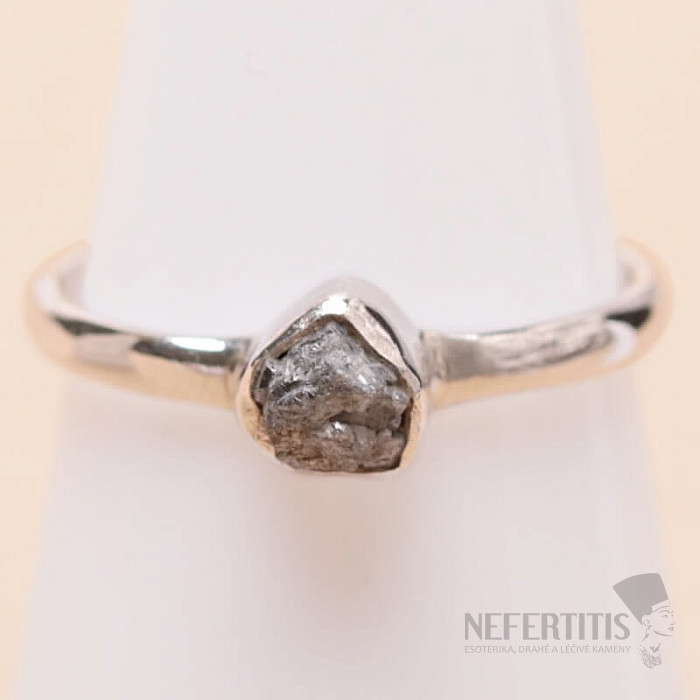 Silver ring with raw natural diamond . Ag 925. You are purchasing the jewelry shown. Stone size approx. 0.3 cm. Don't know your ring size? Learn how to measure it here . Diamond is a symbol of purity. As a gemstone… more »