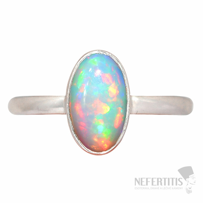 Elegant silver ring with a cabochon of Ethiopian opal. Ag 925. Impressive and elegant jewelry, evoking joy and feelings of harmony from the look. Ethiopian opals, compared to Australian opals, literally luxuriate in neon-bright reflections of colors. Although they don't look like it at first glance, the fireworks of colors that burst from the opal in this pendant with every light hit will enchant not only you, but all your surroundings. Stone size approx. 1.1 cm. You are buying the jewelry pictured.