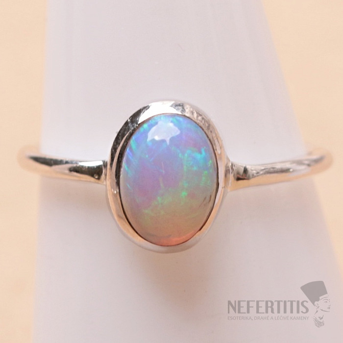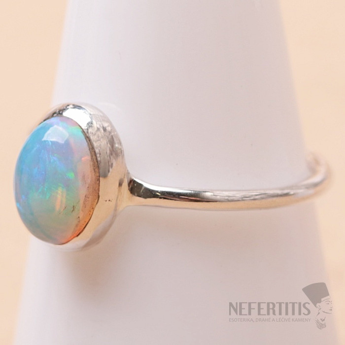 Elegant silver ring with a cabochon of Ethiopian opal. Ag 925. Impressive and elegant jewelry, evoking joy and feelings of harmony from the look. Ethiopian opals, compared to Australian opals, literally luxuriate in neon-bright reflections of colors. Although they don't look like it at first glance, the fireworks of colors that burst from the opal in this pendant with every light hit will enchant not only you, but all your surroundings. Stone size approx. 0.9 cm. You are buying the jewelry pictured.
