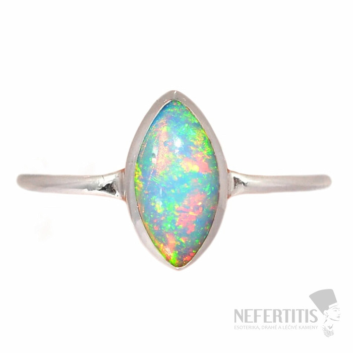 Elegant silver ring with a cabochon of Ethiopian opal. Ag 925. Impressive and elegant jewelry, evoking joy and feelings of harmony from the look. Ethiopian opals, compared to Australian opals, literally luxuriate in neon-bright reflections of colors. Although they don't look like it at first glance, the fireworks of colors that burst from the opal in this pendant with every light hit will enchant not only you, but all your surroundings. Stone size approx. 1 cm. You are buying the jewelry pictured.