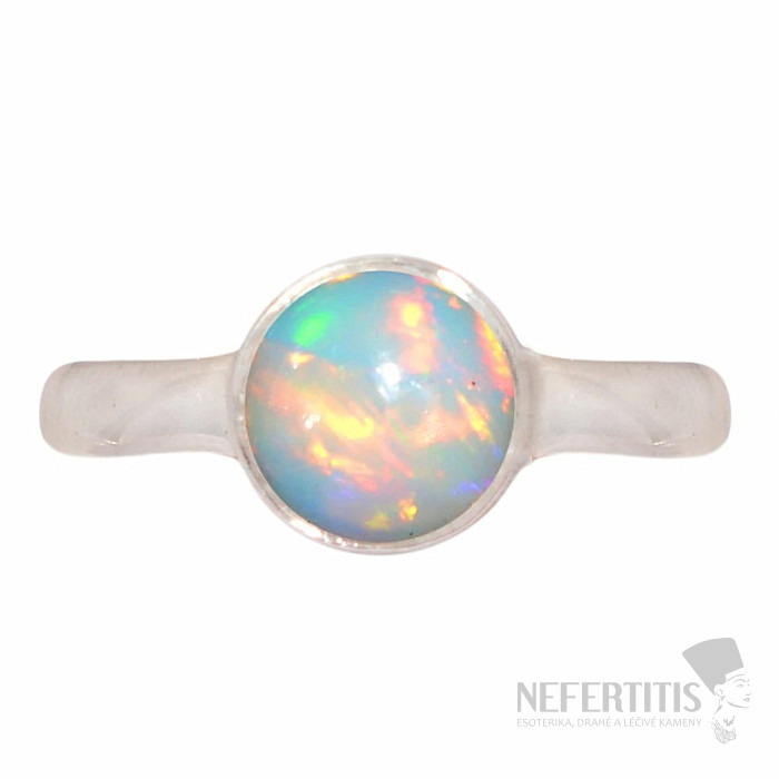Elegant silver ring with a cabochon of Ethiopian opal. Ag 925. Impressive and elegant jewelry, evoking joy and feelings of harmony from the look. Ethiopian opals, compared to Australian opals, literally luxuriate in neon-bright reflections of colors. Although they don't look like it at first glance, the fireworks of colors that burst from the opal in this pendant every time the light hits it will enchant not only you, but all your surroundings. Stone size approx. 0.7 cm. You are buying the jewelry pictured.