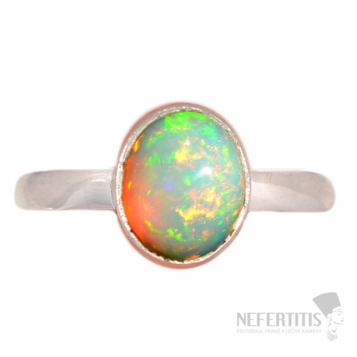 Elegant silver ring with a cabochon of Ethiopian opal. Ag 925. Impressive and elegant jewelry, evoking joy and feelings of harmony from the look. Ethiopian opals, compared to Australian opals, literally luxuriate in neon-bright reflections of colors. Although they don't look like it at first glance, the fireworks of colors that burst from the opal in this pendant with every light hit will enchant not only you, but all your surroundings. Stone size approx. 0.8 cm. You are buying the jewelry pictured.