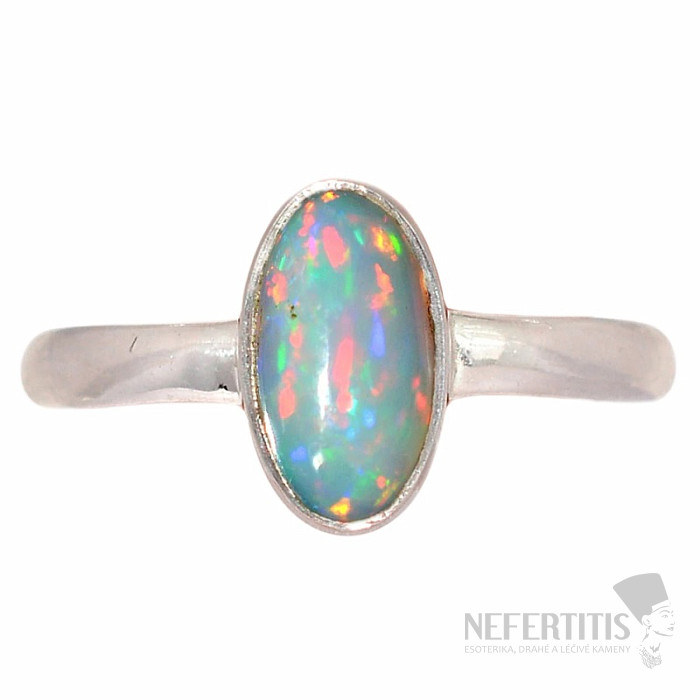 Elegant silver ring with a cabochon of Ethiopian opal. Ag 925. Impressive and elegant jewelry, evoking joy and feelings of harmony from the look. Ethiopian opals, compared to Australian opals, literally luxuriate in neon-bright reflections of colors. Although they don't look like it at first glance, the fireworks of colors that burst from the opal in this pendant with every light hit will enchant not only you, but all your surroundings. Stone size approx. 1 cm. You are buying the jewelry pictured.