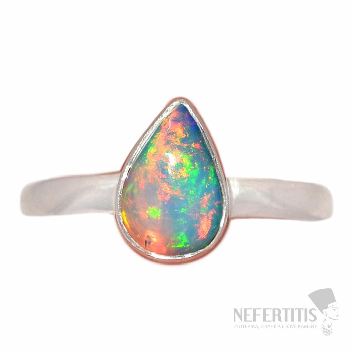 Elegant silver ring with a cabochon of Ethiopian opal. Ag 925. Impressive and elegant jewelry, evoking joy and feelings of harmony from the look. Ethiopian opals, compared to Australian opals, literally luxuriate in neon-bright reflections of colors. Although they don't look like it at first glance, the fireworks of colors that burst from the opal in this pendant every time the light hits it will enchant not only you, but all your surroundings. Stone size approx. 0.8 cm. You are buying the jewelry pictured.