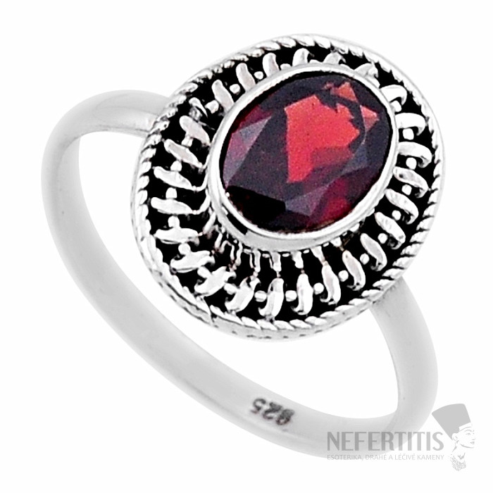 Silver ring with cut garnet. Ag 925. A striking ring, the beauty of which is enhanced by the shimmer of light on the individual cut surfaces. Stone size approx. 0.9 cm. You are purchasing the jewelry pictured.