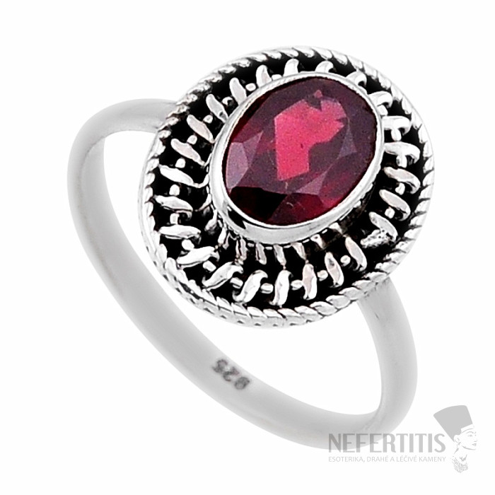 Silver ring with cut garnet. Ag 925. A striking ring, the beauty of which is enhanced by the shimmer of light on the individual cut surfaces. Stone size approx. 0.9 cm. You are purchasing the jewelry pictured.