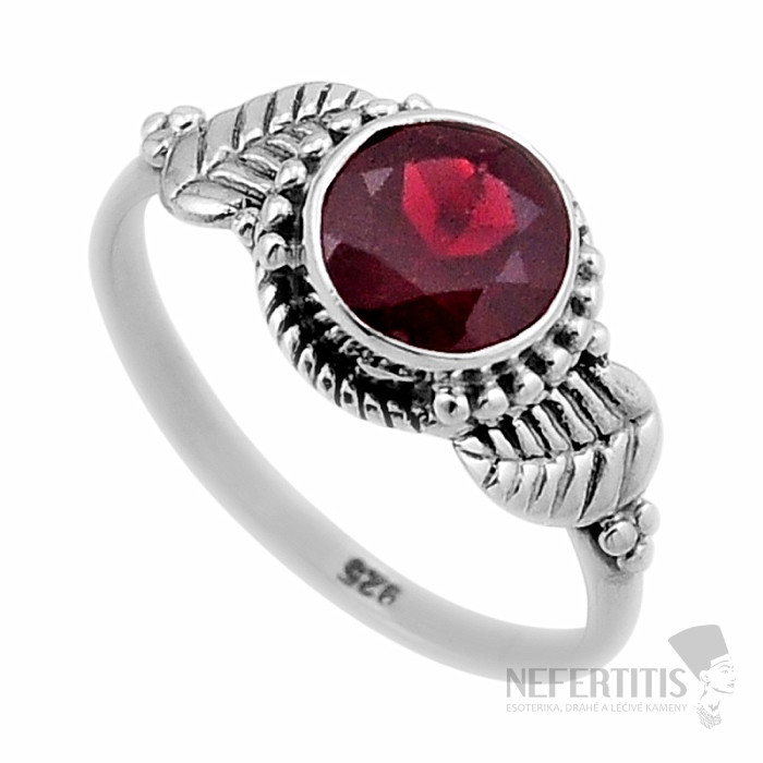 Silver ring with cut garnet. Ag 925. A striking ring, the beauty of which is enhanced by the shimmer of light on the individual cut surfaces. Stone size approx. 0.7 cm. You are purchasing the jewelry pictured.