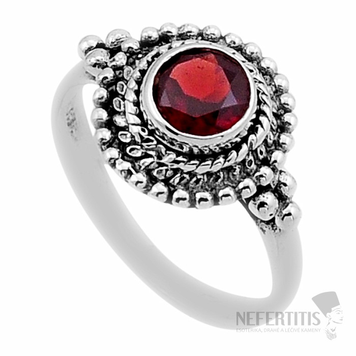 Silver ring with cut garnet. Ag 925. A striking ring, the beauty of which is enhanced by the shimmer of light on the individual cut facets. Stone size approx. 0.6 cm. You are purchasing the jewelry pictured.