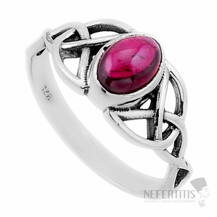 Silver ring with garnet cabochon. Ag 925. Garnet size is approx. 0.7 cm . You are purchasing the jewelry shown. Don't know your ring size? Learn how to measure it here . Garnet is a stone with a strong ability to… more »