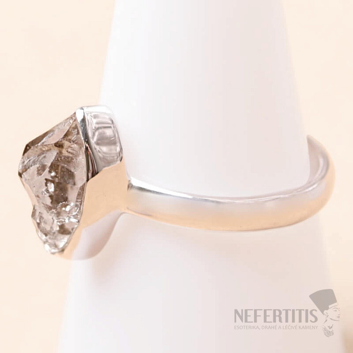 Beautiful ring with a rare crystal herkimer "diamond" in silver. Stone size approx. 1.1 cm. Ag 925. You are purchasing the jewelry pictured.