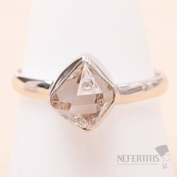 Beautiful ring with a rare crystal herkimer "diamond" in silver. Stone size approx. 0.9 cm. Ag 925. You are purchasing the jewelry pictured.