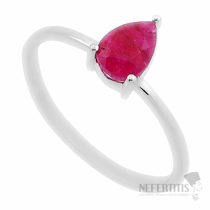 Silver ring with a charming, fiery and captivating Indian modified ruby . Indian ruby is a trade name for a natural stone, most often sillimanite or corundum, artificially dyed to the color of ruby. It is therefore not a natural ruby. Thanks to its beautiful color, this ring will be an unmissable accessory for various occasions. Ag 925. Stone size approx. 0.8 cm. You are purchasing the jewelry pictured.