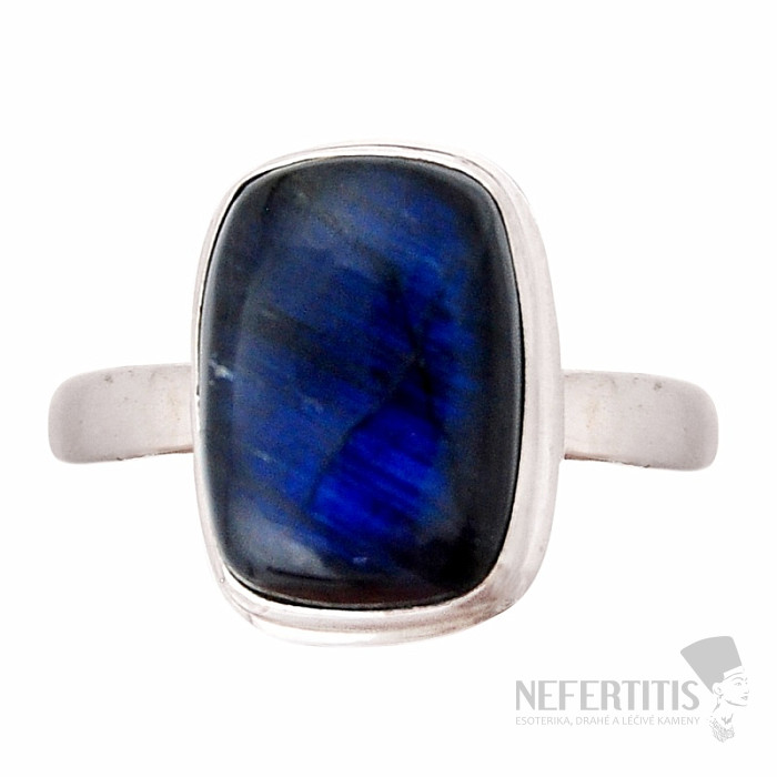 A captivating and exceptional silver ring with first-class polished labradorite with a distinctive rainbow play of colors, in which the bright blue-gold color magically shines when the light hits it, also called "Multifire". Ag 925. . Let yourself be enchanted by the beauty and play of its bright blue color. Together with the size of the stone of approximately 1.5 cm , and the play of colors, it is an attractive and unmissable piece of jewelry. You are buying the jewelry pictured.