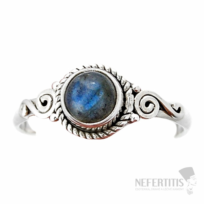 A captivating and exceptional silver ring with first-class polished labradorite with a distinctive rainbow play of colors, in which the bright blue-gold color magically shines when the light hits it, also called "Multifire". Ag 925. . Let yourself be enchanted by the beauty and play of its bright blue color. Together with the size of the stone of approximately 0.6 cm , and the play of colors, it is an attractive and unmissable piece of jewelry. You are buying the jewelry pictured.