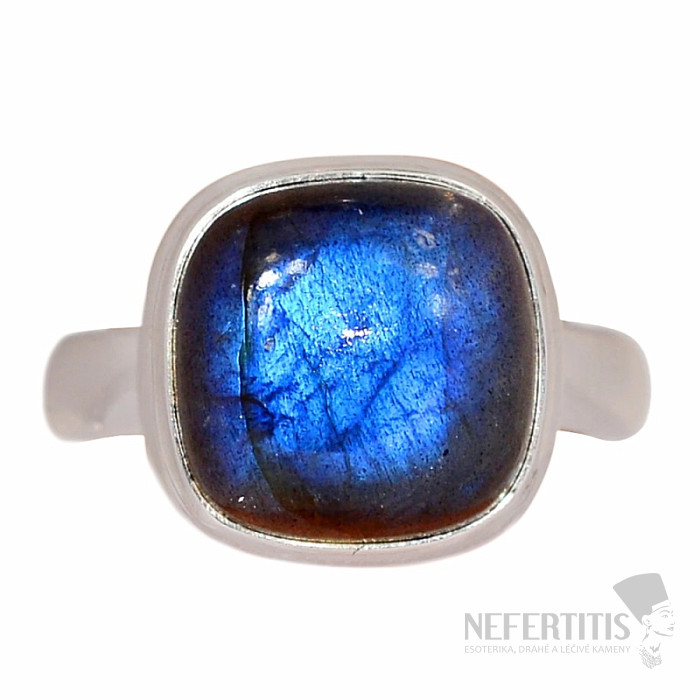 A captivating and exceptional silver ring with first-class polished labradorite with a distinctive rainbow play of colors, in which the bright blue-gold color magically shines when the light hits it, also called "Multifire". Ag 925. . Let yourself be enchanted by the beauty and play of its bright blue color. Together with the size of the stone of approximately 1.2 cm , and the play of colors, it is an attractive and unmissable piece of jewelry. You are buying the jewelry pictured.