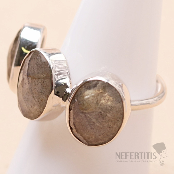 Silver ring with first-class cut labradorites with a rainbow of colors. Ag 925. Size of individual stones approx. 1.1 cm. You are purchasing the jewelry shown directly.