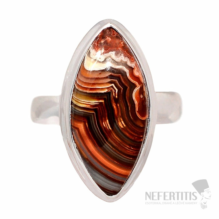 Silver ring with rare Mexican lace Laguna Lace agate . Lace agate is a charming piece of jewelry, because thanks to its literally spectacular colors , Laguna lace agate is the most valued striped agate in the world . This ring has a beautiful pattern and shape that make it an unmissable gem. Stone size approx. 1.8 cm . Ag 925. You are purchasing the jewelry shown directly.