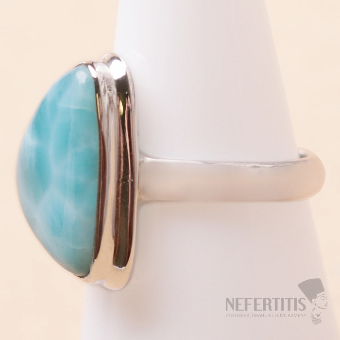 Elegant ring silver with a beautiful and high-quality larimar cabochon , which resembles the play of sun rays on the surface of the sea. The larimar stone is carefully selected with a distinct blue color and pattern. Larimar size approx. 1.7 cm. Ag 925. You are purchasing the jewelry shown directly.
