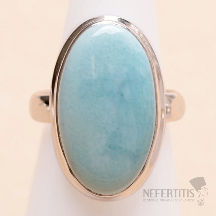 Elegant ring silver with a beautiful and high-quality larimar cabochon , which resembles the play of sun rays on the surface of the sea. The larimar stone is carefully selected with a distinct blue color and pattern. Larimar size approx. 2.3 cm. Ag 925. You are purchasing the jewelry shown directly.