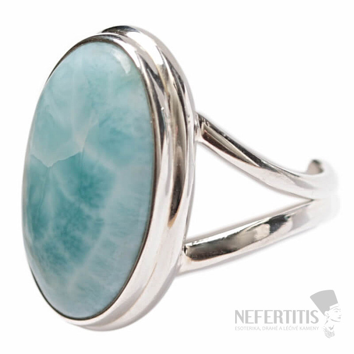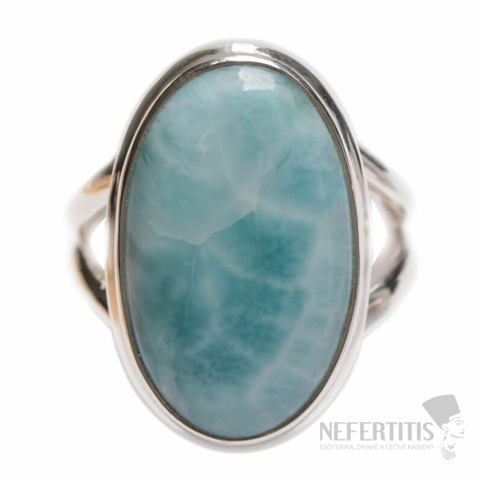 Elegant ring silver with a beautiful and high-quality larimar cabochon , which resembles the play of sun rays on the surface of the sea. The larimar stone is carefully selected with a distinct blue color and pattern. Larimar size approx. 2.1 cm. Ag 925. You are buying the jewelry shown directly.